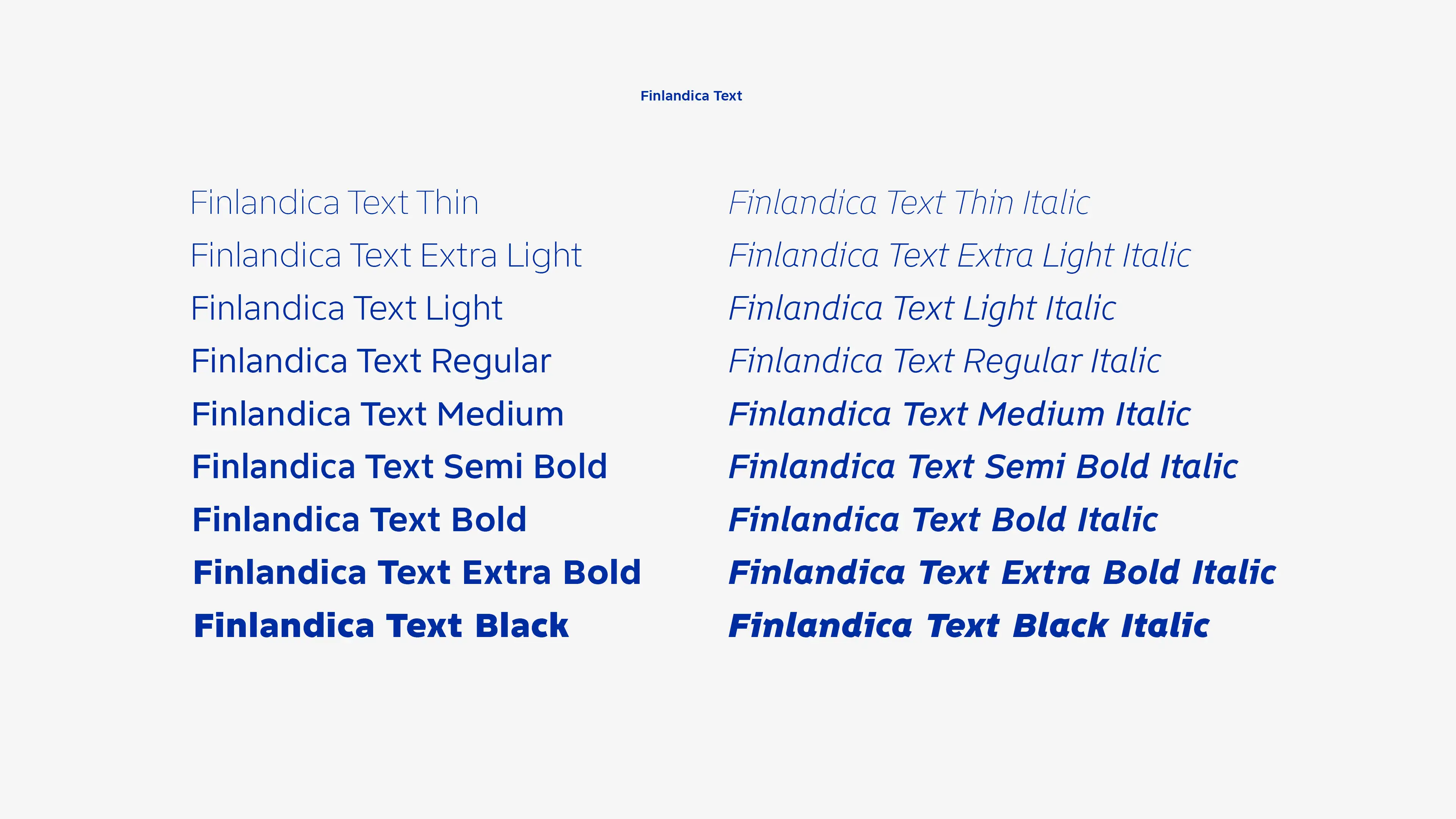 The national font of Finland Finlandica was originally commissioned by the Prime Minister’s Office for the promotion of Finland. Finlandica has since become the default font for many government offices. It’s a functional, clean and dynamic typeface, with small characteristic detailed quirks.