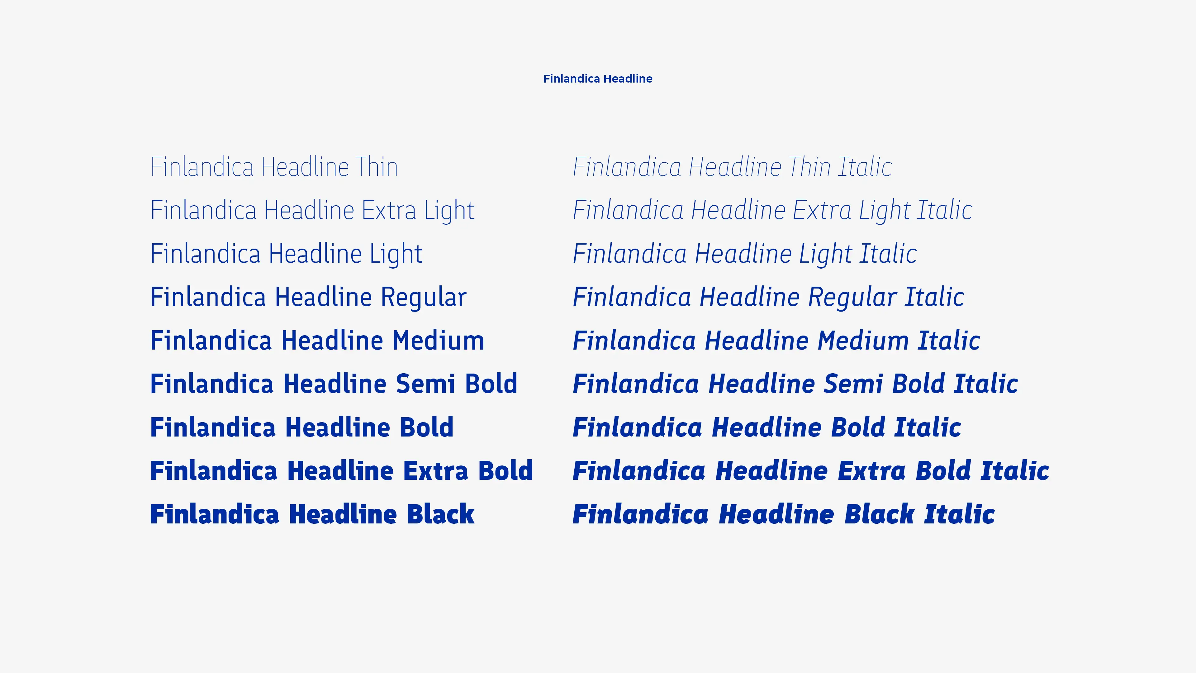 The national font of Finland Finlandica was originally commissioned by the Prime Minister’s Office for the promotion of Finland. Finlandica has since become the default font for many government offices. It’s a functional, clean and dynamic typeface, with small characteristic detailed quirks.